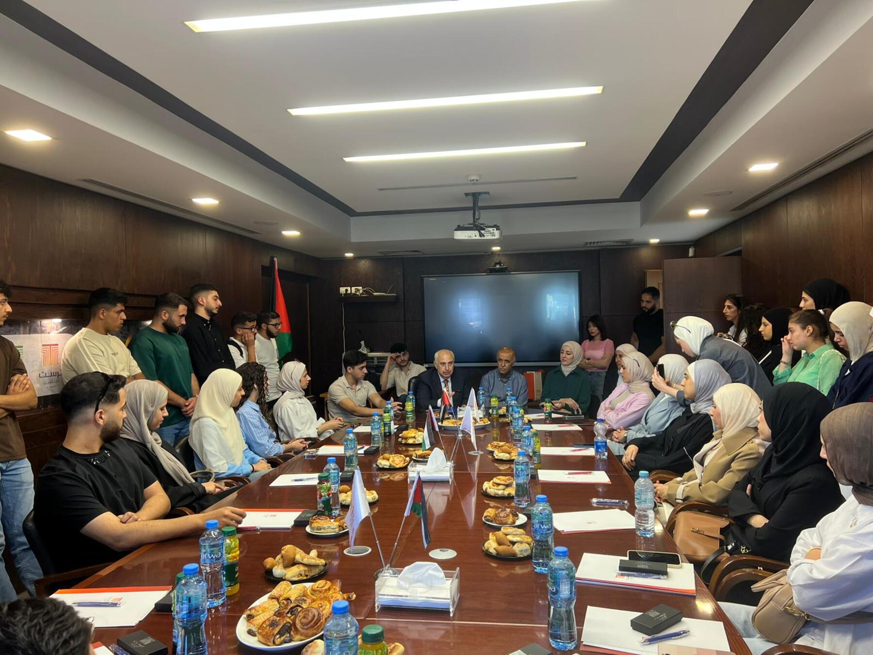 وقد رحب السيد أنور الشنطي، الرئيس التنفيذي لمجموعة ترست العالمية للتأمين، بالوفد الطلابي الذي حضر برفقة واشراف عدد من أعضاء الهيئة التدريسية في الجامعة، وهم: الدكتورة ضحى الطنبور رئيسة قسم العلوم المالية والمصرفية، والدكتورة لمى الشنطي المتخصصة في التسويق الرقمي، والدكتور مفيد الظاهر من قسم العلوم المالية والمصرفية، والأستاذة ليان السائح المتخصصة في ذكاء الأعمال.